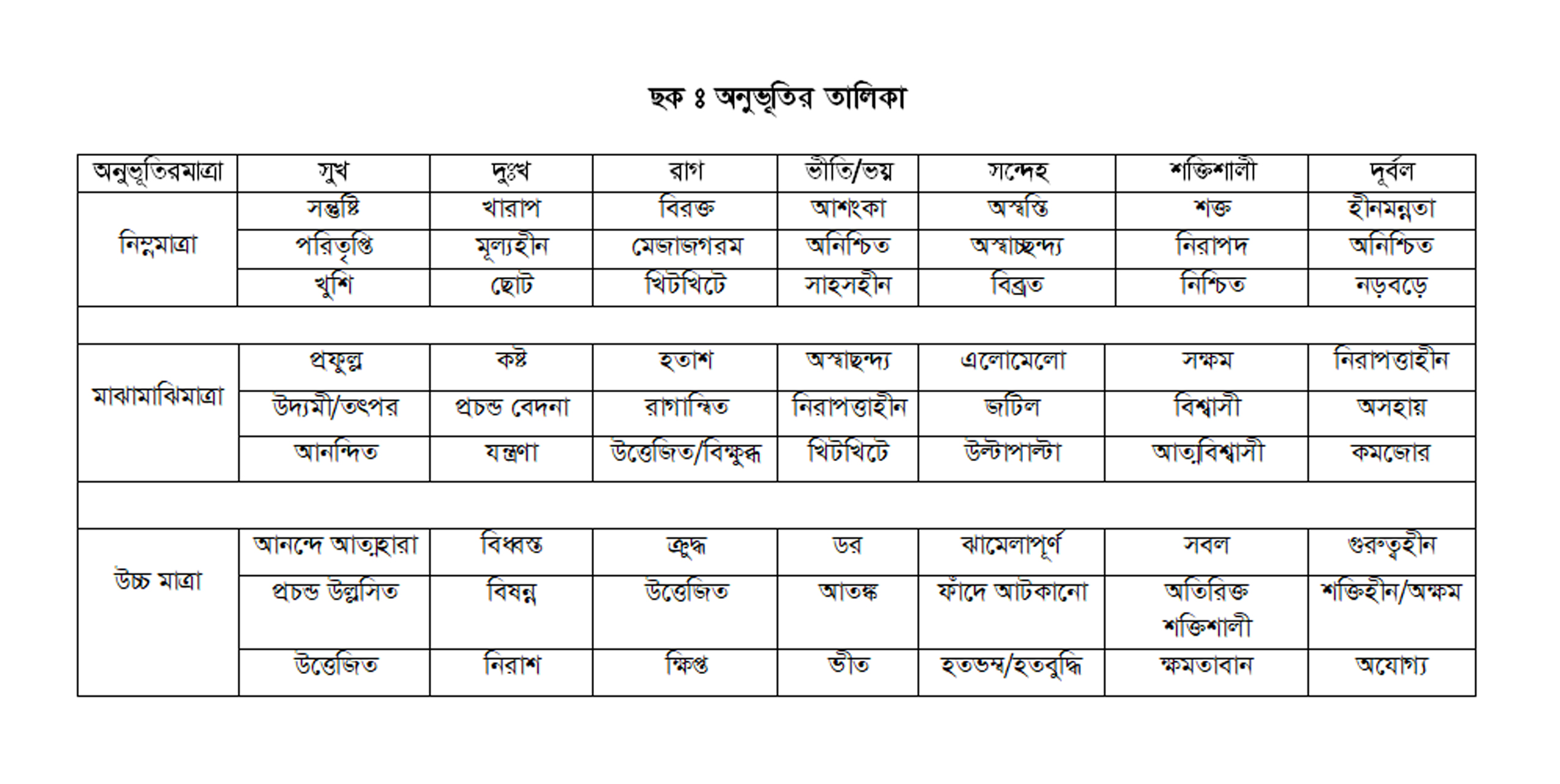 ঙ) ………………………………………………(শুধু অনুভূতি)