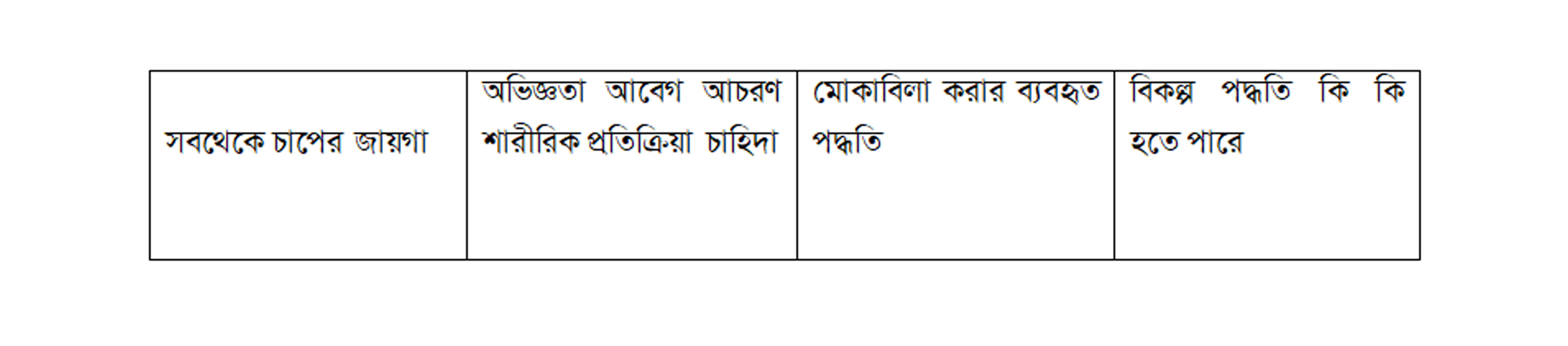 ১. চাপ সৃষ্টিকারী পরিস্থিতি কতটা তীব্র এবং তার স্থায়িত্ব কতটা।